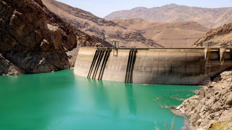 Die Füllstande der Stauseen für Teheran sind auf 14 Prozent gesunken, wie auch am Amir-Kabir-Damm zu sehen ist.