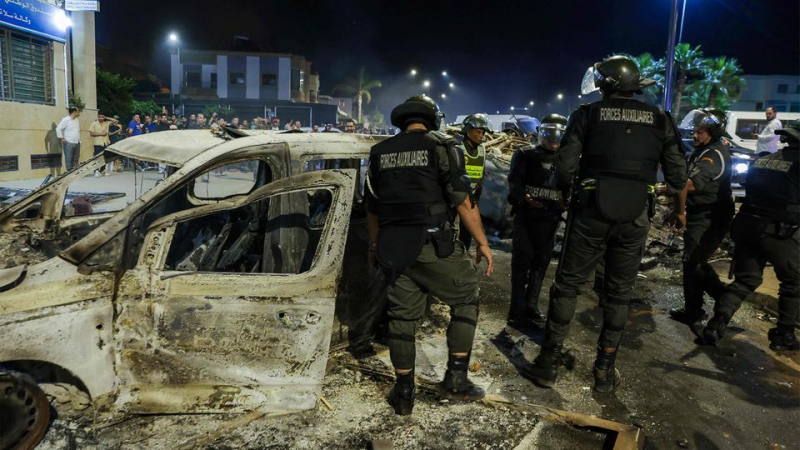In mehreren Städten kam es bereits zu gewaltsamen Ausschreitungen. Ein AP-Reporter schilderte, dass in Salé bei Rabat Hunderte vermummte Jugendliche Autos, Banken und Geschäfte angezündet, Fenster eingeschlagen und Läden geplündert hätten.