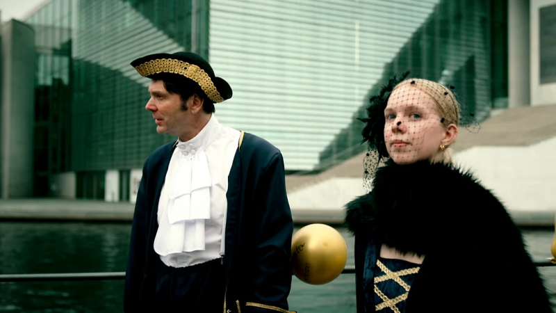 Die Stiftung für die Rechte zukünftiger Generationen bei einer Protestaktion gegen die üppigen Pensionsansprüche von Politikern. Für sie gleichen sie den Sonderrechten des früheren Adels.Bildrechte: MITTELDEUTSCHER RUNDFUNK