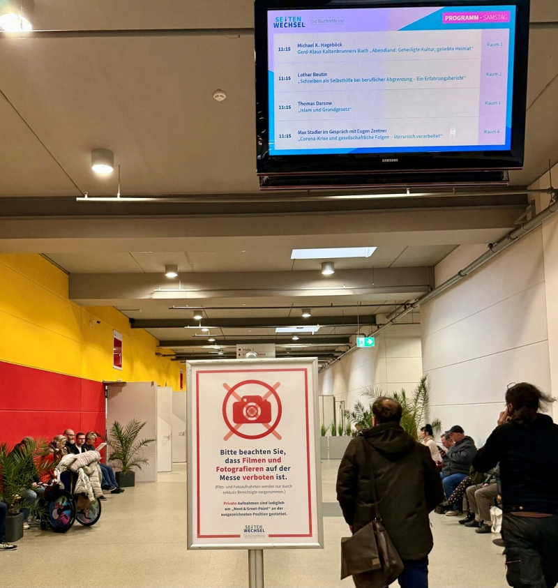 Filmen und Fotografieren waren auf der Buchmesse "Seitenwechsel" verboten – für einige aber doch erlaubt.Bildrechte: Thomas Datt, MDRRechte Buchmesse mit extremistischen Akteuren