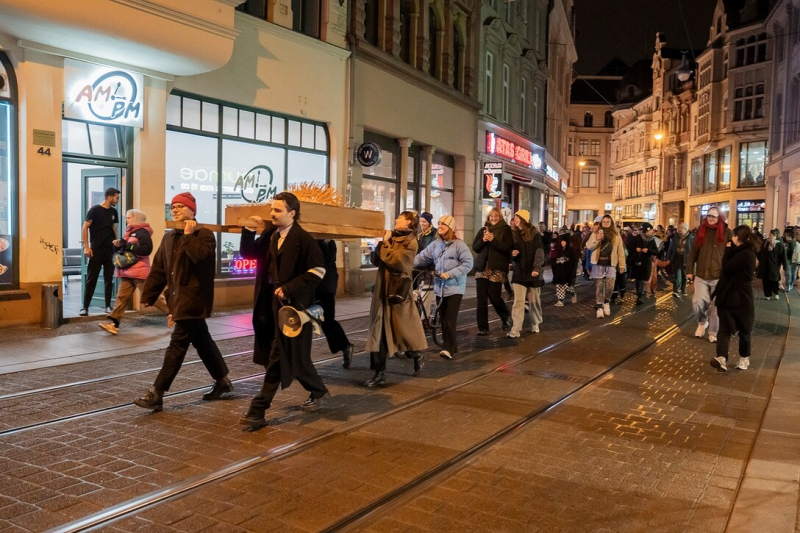 Besucher auf dem Gegenfestival "Wir", das an diesem Wochenende seinen Abschluss fand.Bildrechte: Wir Festival, Marco WarmuthAus Protest gegen "Seitenwechsel" am Stadtrand fand in der Innenstadt von Halle das Gegenfestival "Wir" statt – mit Schaufensteraktionen, Lesungen, Konzerten und Podiumsdiskussionen. Laut den Veranstaltern kamen im Laufe des Festivals seit dem 21. September insgesamt 12.000 Menschen zu den 400 Veranstaltungen. Am Abschluss-Wochenende hätten noch 35 Veranstaltungen stattgefunden, zu denen rund 1.500 Besucher gekommen seien.