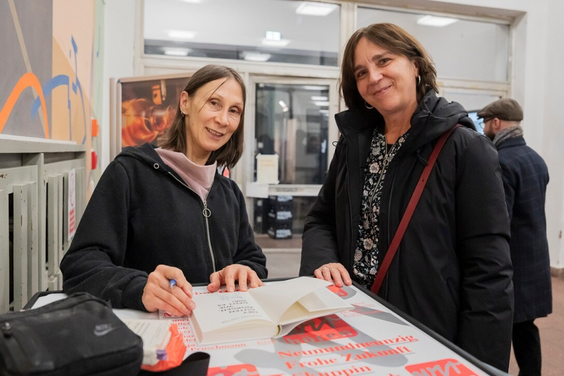 Buchpreisträgerin Martina Hefter las beim "Wir"-Festival und gab Autogramme. Bildrechte: Wir Festival, Marco WarmuthMehr als 30.000 Menschen hatten im Vorfeld eine Petition für die Absage der Buchmesse "Seitenwechsel" unterzeichnet, weil die Veranstaltung Hass und Intoleranz fördere. Auch der Stadtrat von Halle sprach sich mehrheitlich gegen die Büchermesse aus, verurteilte deren Ausrichtung und die Terminierung auf den 9. November, den Gedenktag für die Opfer der nationalsozialistischen Pogrome sowie der Friedlichen Revolution von 1989. Auch Halles parteiloser Oberbürgermeister Alexander Vogt hatte in einer offiziellen Stellungnahme seine Sorge über die geplante Messe geäußert.