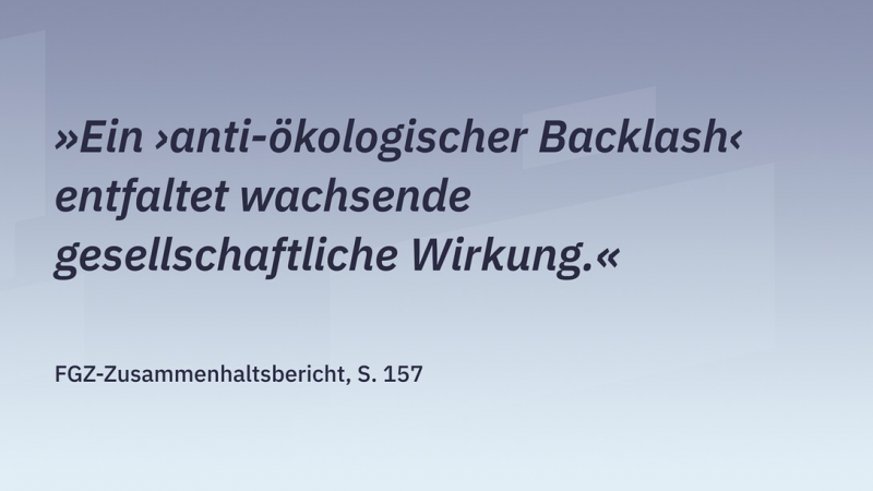 Wagen wir den Blick in die Zukunft: Im FGZ-Zusammenhaltsbericht werden verschiedene Szenarien aufgemacht. Eines davon: ein anti-ökologischer Backlash. Was könnte den noch aufhalten?