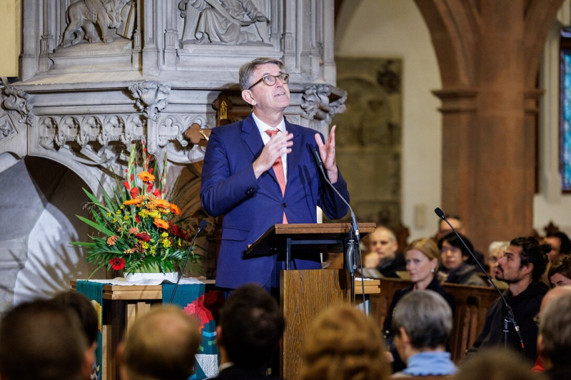Kulturstaatsminister Wolfram Weimer bezeichnete Wollnys Forschung als "wissenschaftliche Meisterleistung".Bildrechte: Jens Schlueter/Bach-Archiv LeipzigDie Präsentation der beiden neuen Werke fand im Rahmen der Festwoche zum 75-jährigen Bestehen des Bach-Archivs in Leipzig statt.