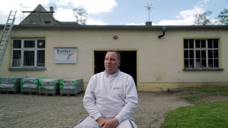 Die Auftragslage hängt für Malermeister Udo Dorber eng mit dem Werk zusammen.Bildrechte: Hoferichter&Jacobs/MDRKonflikte um Energiewende und Projekte
