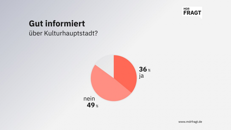Die Teilnehmenden von MDRfragt sehen die öffentliche Kommunikation rund um die Kulturhauptstadt als einen Schwachpunkt der Organisation. Die Hälfte der Befragten (49 Prozent) hielt die Informationen zu den Angeboten für unzureichend. Nur ein gutes Drittel (36 Prozent) fühlte sich hingegen gut informiert. Selbst unter Menschen, die sich selbst als kulturell interessiert beschreiben, sind lediglich 42 Prozent mit der Kommunikation zufrieden.