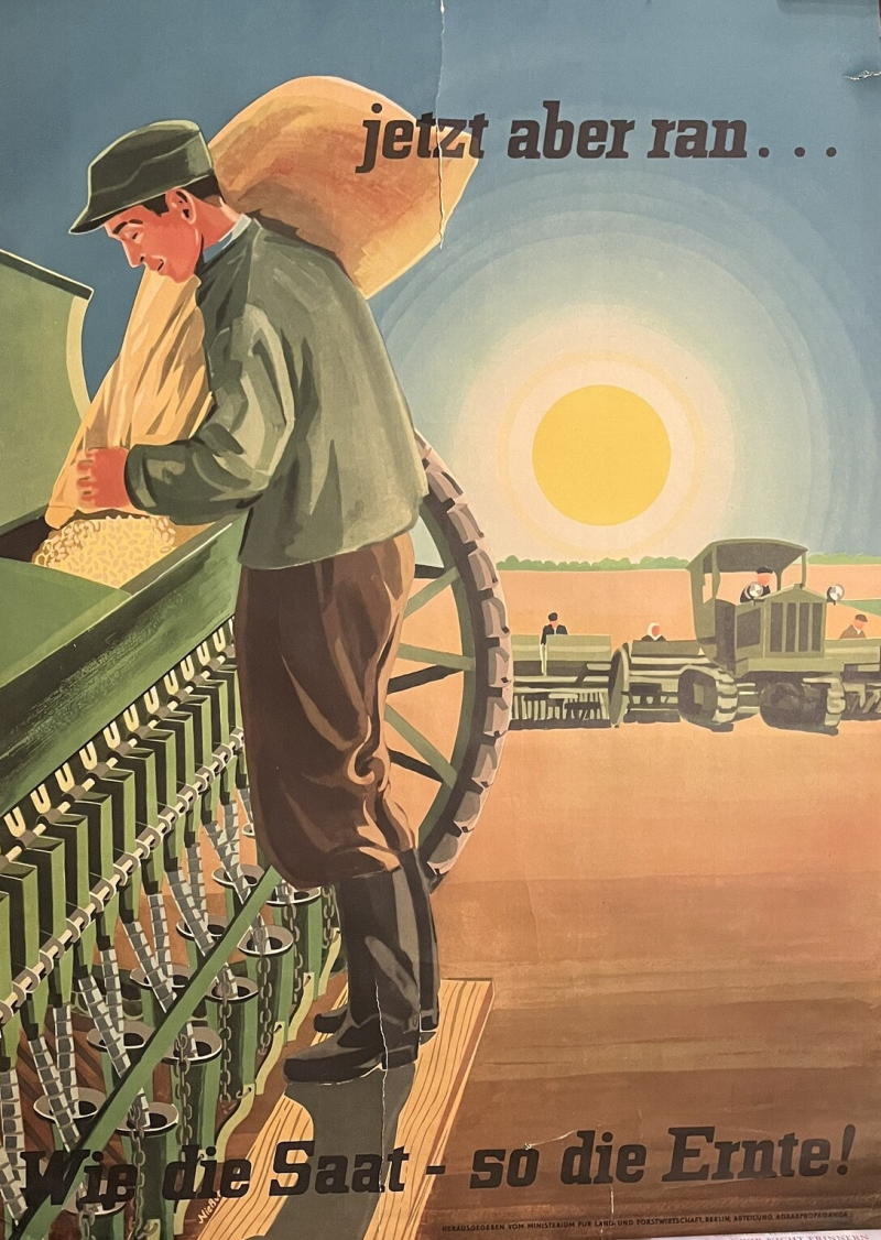 Ein DDR-Plakat aus den 50er-Jahren, gestaltet von Andreas Nießen im Auftrag des neu gegründeten DDR-Landwirtschaftsministeriums.Bildrechte: Andreas MöllerIm Herunterregeln von Gefühlen war er vor allem ein Vertreter seiner Generation, weniger ein Sinnbild der DDR, die 'Schuld' genauso wenig wie der Westen thematisiert hatte.