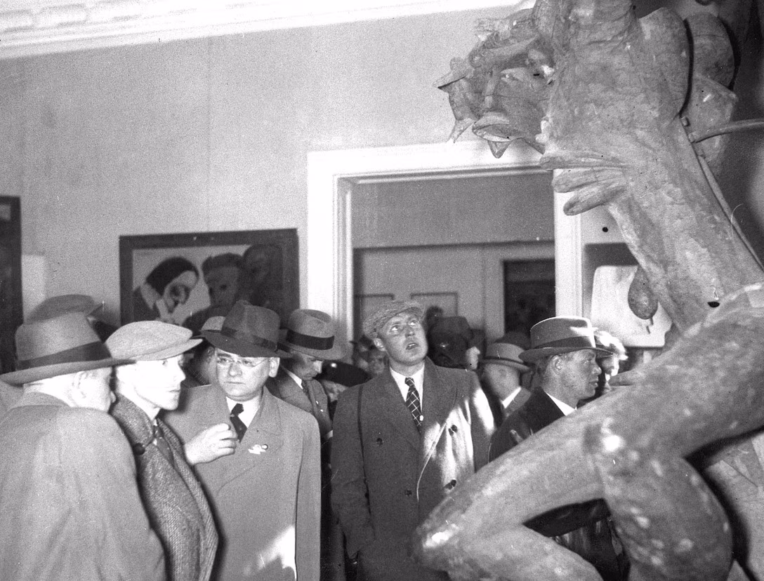 1937: Besucher der Ausstellung "Entartete Kunst" in Berlin. Möllers Großvater erhielt 1937 Berufsverbot, weil er mit einer Jüdin verheiratet war – und ließ sich scheiden.Bildrechte: picture alliance/SZ Photo/ScherlKleinmachnow: Insel der Intellektuellen
