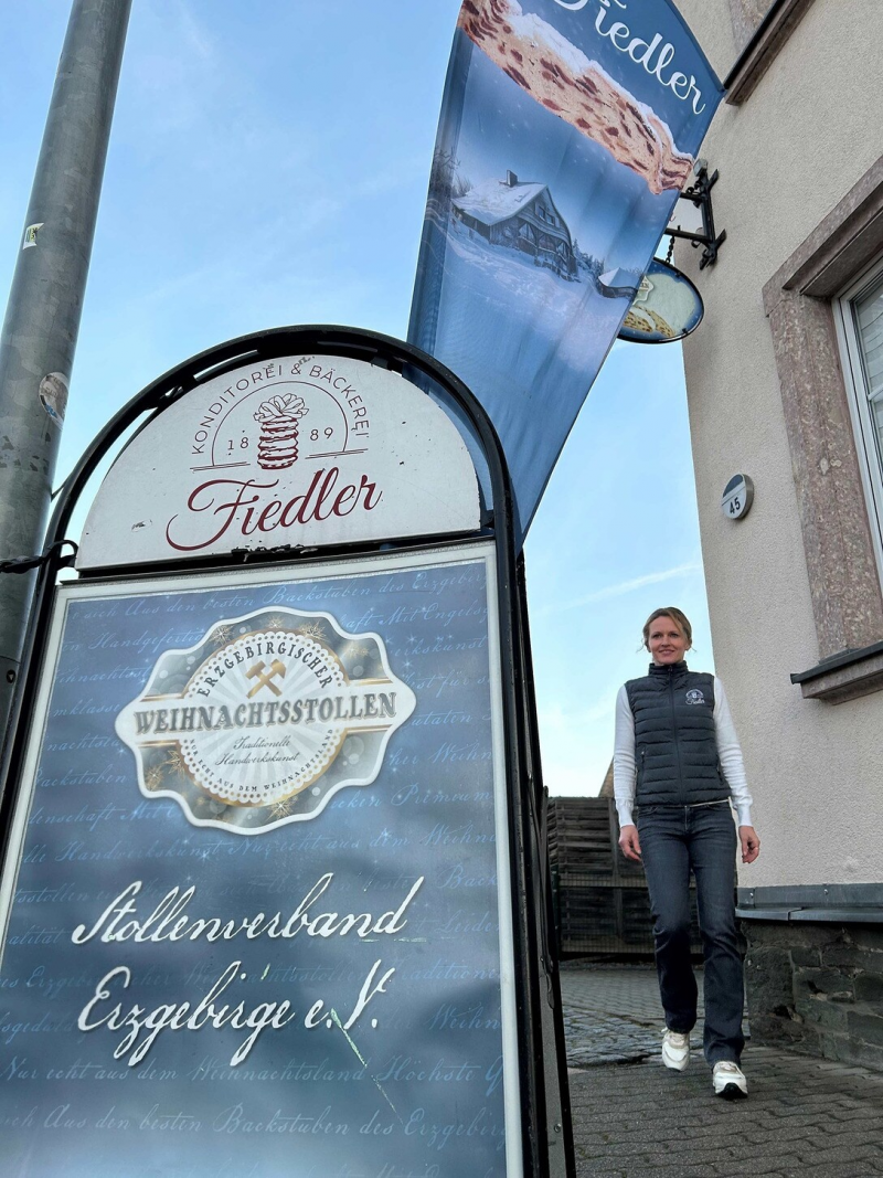 Noch mehr Stollenwünsche können die Fiedlers derzeit gar nicht bewältigen, sagt die Chefin, die nach ihrer Konditorenausbildung nach Australien, Österreich und Frankreich ging und 2018 die Bäckerei von ihren Eltern übernahm – inklusive des Familien-Stollenrezepts.