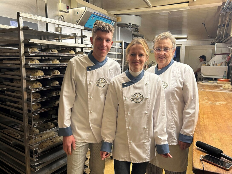 Ein früher Wintermorgen in der Konditorei und Bäckerei Fiedler im erzgebirgischen Einsiedel. Mit Junior Willi, 22 Jahre alt, seinem Opa Bäckermeister Stephan Fiedler, 73, und Tochter Sandy Fiedler stehen drei Bäckergenerationen in der engen Backstube.