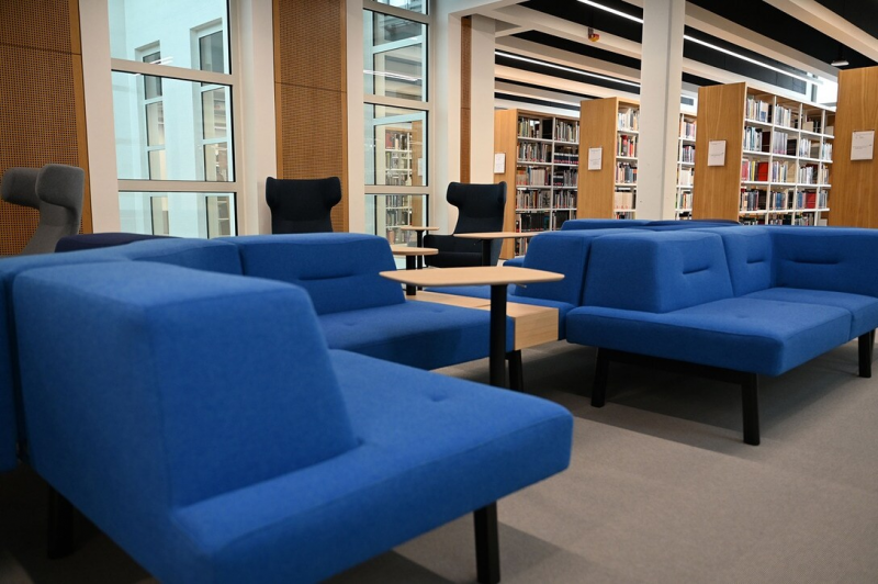 Um dem gerecht zu werden, bietet die Bibliothek der TU Freiberg ihren Nutzerinnen und Nutzer zum Beispiel Lesesäle mit verschiedenen Akustikzonen von laut bis leise an. Außerdem stehen ihnen neben klassischen Arbeitsplätzen, einem Podcast-Studio, einem Mixed-Reality-Space und einem Science-Lab mit speziellen 3D-Scannern und -Drucker auch verschiedene Lounge-Bereiche zum Ausspannen und Abschalten zur Verfügung, inklusive Dachterrasse und Café mit Platz für Veranstaltungen.