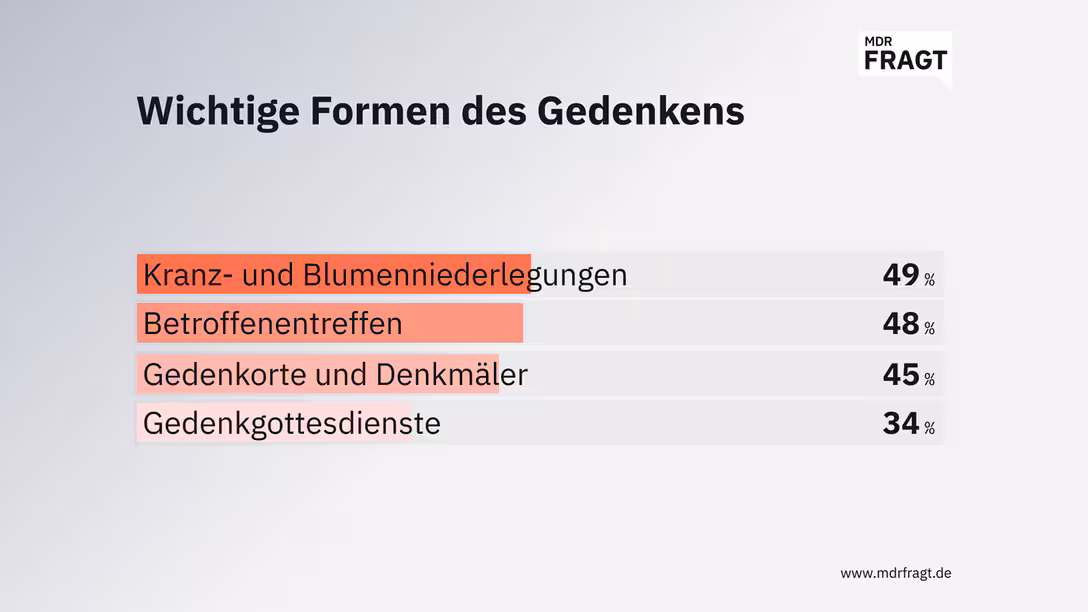 Bildrechte: MITTELDEUTSCHER RUNDFUNKWelche Formen der Erinnerung und des Gedenkens die MDRfragt-Mitglieder wichtig finden, haben viele von ihnen in Kommentaren geschrieben: