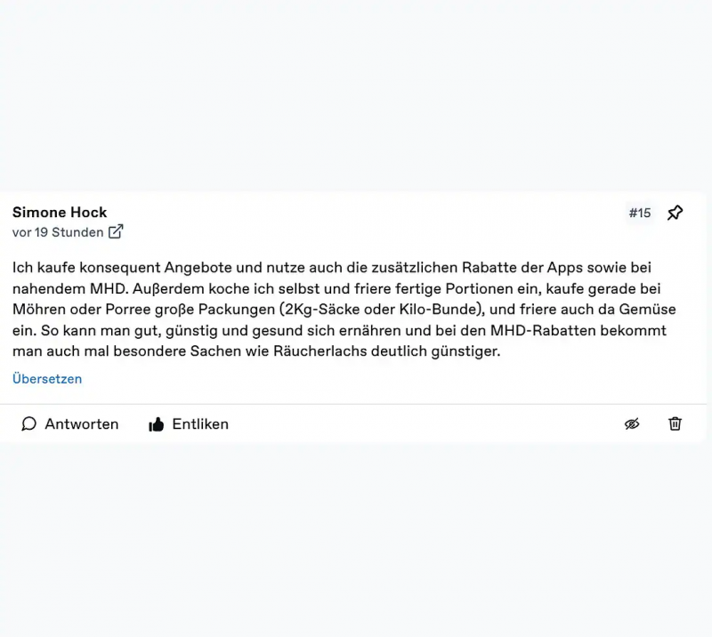 Bildrechte: facebook.com/MDRAKTUELLNicht wenige schreiben auch, dass sie ihr Einkaufsverhalten doch angepasst haben: Sie kaufen gezielt Angebote, kleinere Mengen oder Produkte kurz vor dem Mindesthaltbarkeitsdatum, kochen selbst und frieren Portionen ein.