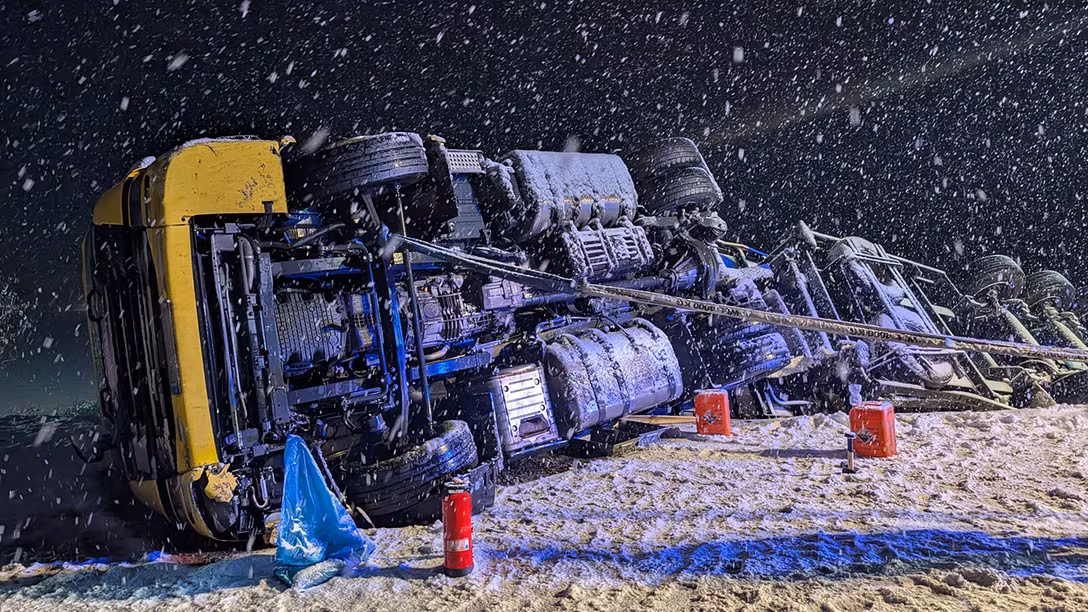 Am Freitagmorgen war ein Lkw auf der A4 bei Gebesee im Kreis Sömmerda umgekippt.Bildrechte: picture alliance/dpa/Wichmann TV | Martin WichmannAuch auf den Straßen und Autobahnen hat sich die Lage vorübergehend gebessert. Am Freitag und Samstag hatten starker Schneefall und Glätte in Sachsen, Sachsen-Anhalt und Thüringen für Unfälle und Behinderungen gesorgt. Teilweise mussten Straßen zwischenzeitlich gesperrt werden. In Städten wie Gera und Jena war der Nahverkehr zeitweise stark beeinträchtigt, auch bei Regionalzügen und der S-Bahn Mitteldeutschland kam es nach Bahn-Angaben zu Verzögerungen und Ausfällen.