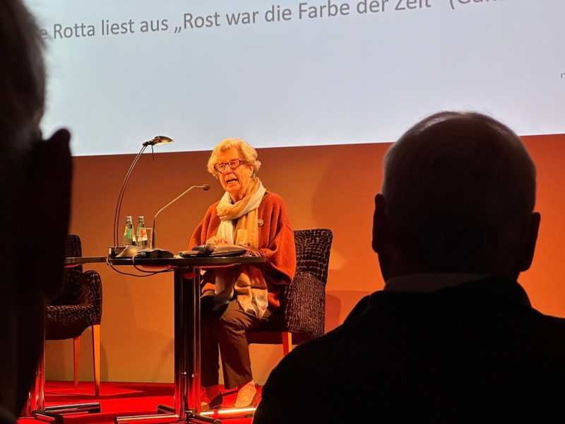 Linde Rotta würdigt in "Rost war die Farbe der Zeit" auch den DDR-Bürgerrechtler Werner Schulz.Bildrechte: Ole Steffen/MDRDie letzte Lebensgefährtin des 2013 verstorbenen Schriftstellers Erich Loest wagt den Blick tief in die Geschichte Leipzigs und der DDR. Erinnert an die Sprengung der Paulinerkirche, an den 17. Juni 1953, schildert biografische Eckpfeiler aus dem Leben Erich Loests, dessen Bedeutung für die Stadt Leipzig bis heute nicht begriffen wurde, so Linde Rotta: "Das glaube ich, haben Sie nicht kapiert – bis jetzt nicht. Und, dass wirklich sein Herz an Leipzig gehangen hat. Und, dass es so schnell keinen zweiten mehr gibt, der Leipzig so geliebt hat wie Erich Loest. Das muss ich sagen."