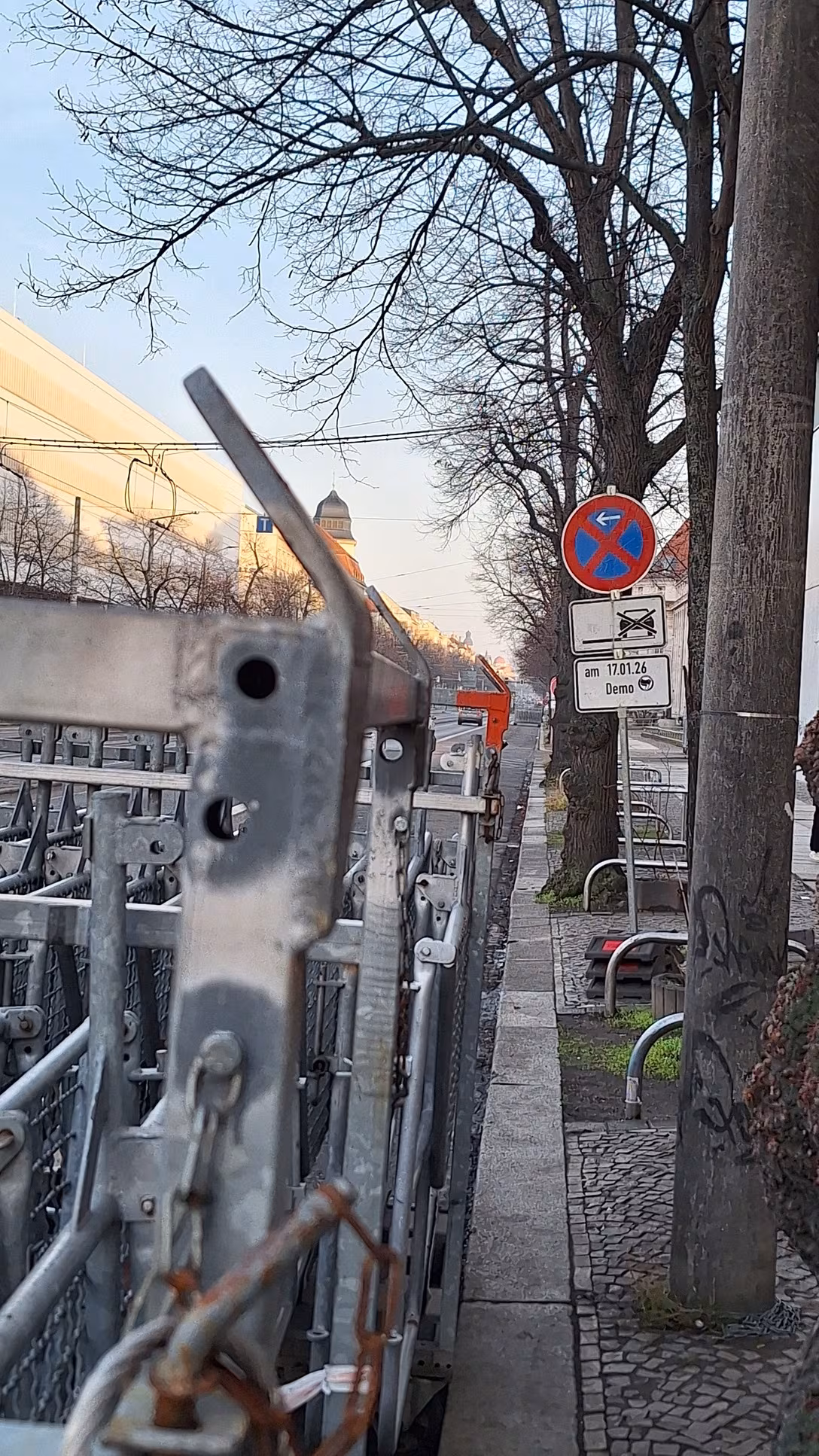 Für die mindestens acht Demonstrationen am Sonnabend in Leipzig hat die Polizei am Connewitzer Kreuz Absperrgitter bereitgelegt.Bildrechte: Kathrin König10:00 Uhr | Linkspartei mahnt zu friedlichem Verlauf