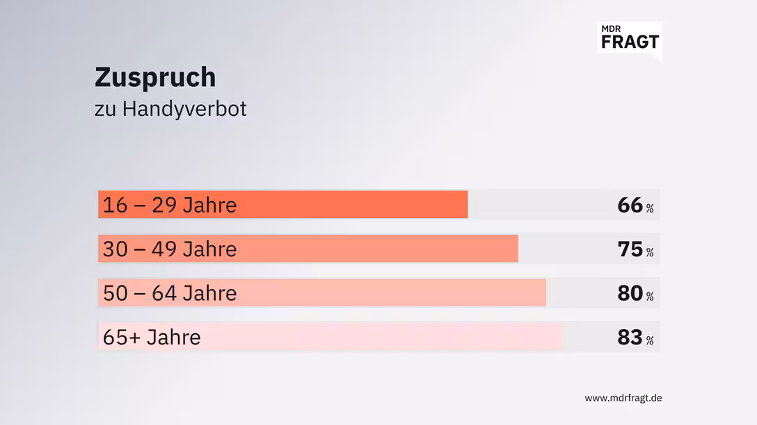 So wie Jan (49) aus Erfurt sehen es viele MDRfragt-Teilnehmende: "Ich finde es richtig, weil soziale Netzwerke nachweislich Einfluss auf Selbstbild, Konzentration und psychische Gesundheit haben und Kinder damit häufig überfordert sind." Katharina (58) aus dem Eichsfeld beobachtet: "Kinder können doch noch gar nicht Wichtiges von Unwichtigem filtern." An der Umfrage haben sich mehr als 19.000 Menschen aus Sachsen, Sachsen‑Anhalt und Thüringen beteiligt.