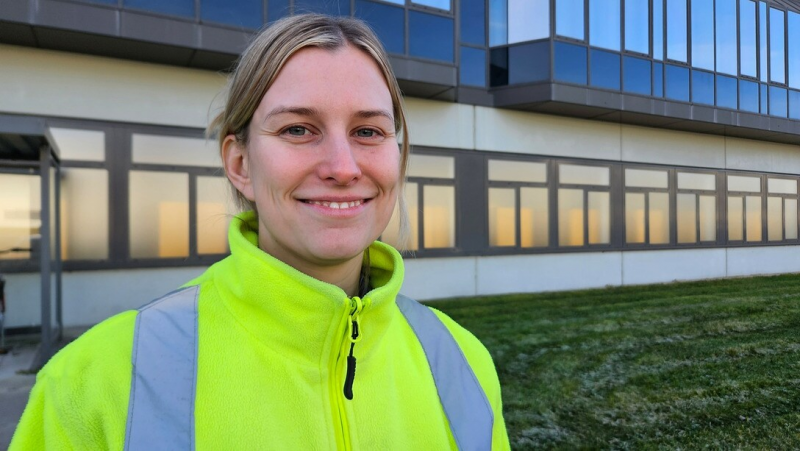 Mittendrin in gelber Warnjacke: VW-Arbeiterin Stephanie Haferkorn: "Das ist meine Werkstatt. Hier kommen die defekten Flurförderfahrzeuge an. Wir reparieren die, machen Wartung oder je nachdem, was gerade anliegt."