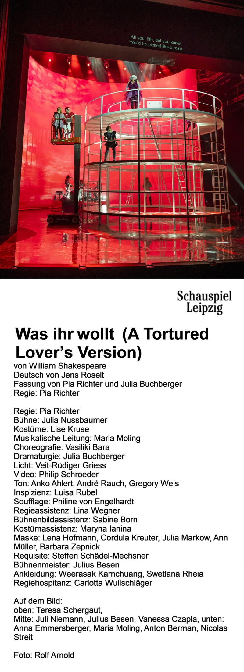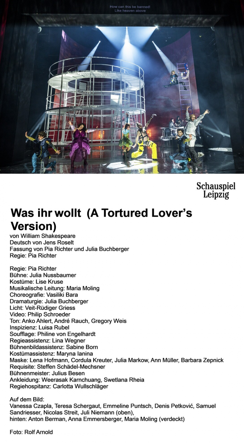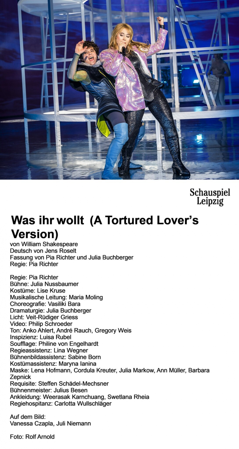 - Am Schauspiel Leipzig wurde Shakespeares "Was ihr wollt" zum Konzert-Theater mit Songs von Taylor Swift.