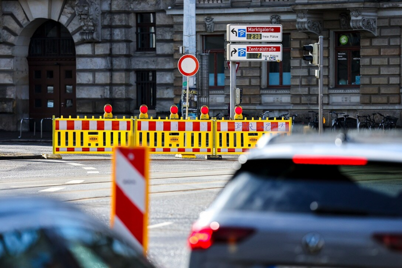 Anfang der Woche wurden Teile des Leipziger Innenstadtrings gesperrt, nachdem dort ein Auto in ein Schlagloch gefahren war und beschädigt wurde.Bildrechte: picture alliance/dpa | Jan WoitasAm vergangenen Wochenende hatte es auf dem Leipziger Innenstadtring einen Unfall gegeben. Ein Auto war in ein Schlagloch gefahren und beschädigt worden. Die Polizei sperrte den entsprechenden Abschnitt.