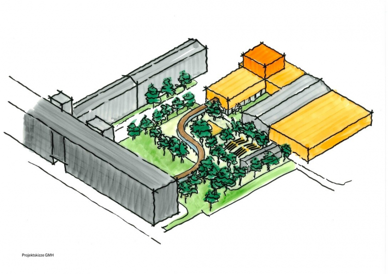 Eine Projektskizze zeigt den Neubau des Schauspielhauses (gelb und orange) am Spinnbau-Komplex (grau).Bildrechte: Projektskizze GMHNach Angaben der Stadt würden sich die Kosten für eine Sanierung des Schauspielhauses am alten Standort einschließlich eines Erweiterungsbaus für Figurentheater und Studiobühne auf circa 69 Millionen Euro belaufen. Der Neubau eines Schauspielhauses am Theaterquartier Spinnbau, inklusive Nutzung des bereits vorhandenen Figurentheaters und der Studiobühne würde Kosten in Höhe von etwa 56 Millionen Euro verursachen.