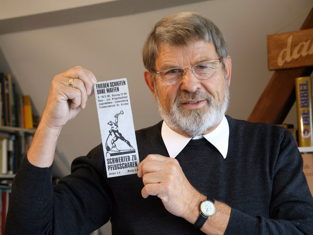 Denn schon wenig später avancierte das "Schwerter zu Pflugscharen"-Motiv zum Symbol der Friedensbewegung in der DDR. Junge Leute hefteten sich die Drucke aus der Herrnhuter Druckerei an ihre Parkas und Taschen und riefen damit den Argwohn der Staatsmacht hervor. "Der Sozialismus braucht Pflugscharen und Schwerter", erläuterte Verteidigungsminister Heinz Hoffmann vor der Volkskammer den Standpunkt der Regierung der DDR.