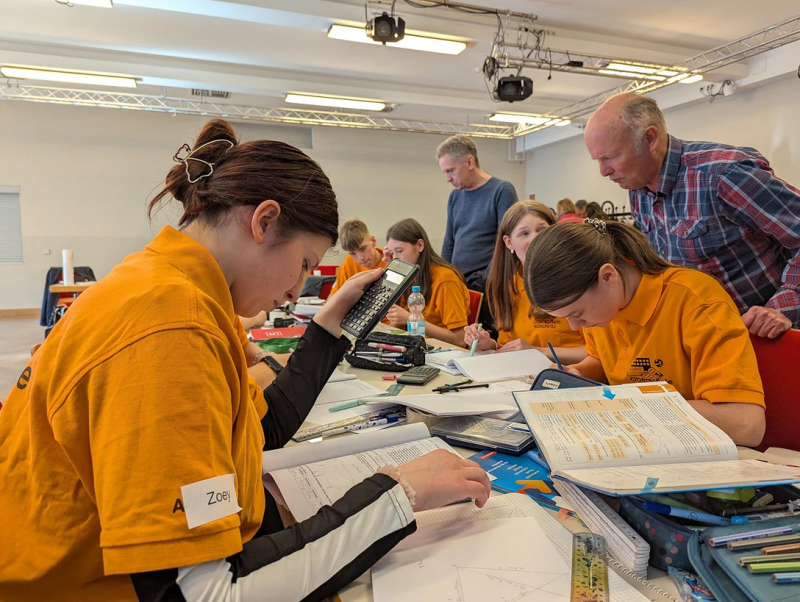 Bei einer anderen Aufgabe stellen die Schüler die mehrere Kilometer lange Großenhainer Grundlinie in Miniaturformat nach. Auch hier geht es um Teamarbeit, Zeit und vor allem: Genauigkeit.