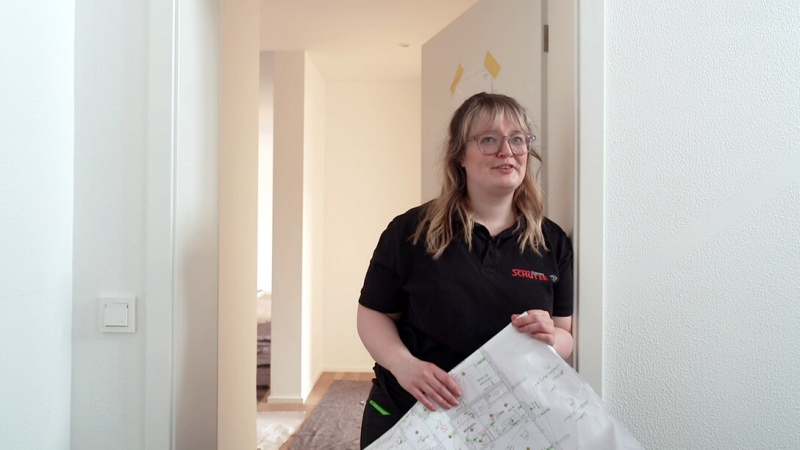 "Aber ohne Fachkenntnisse geht es nicht", war Ralf Schütze klar. Also absolvierte Franziska im Schnelldurchlauf eine Elektrikerlehre. Jetzt macht sie die Meisterschule und arbeitet parallel bereits in der Firma. Ihre Erfahrungen in der IT-Brange machten sie schnell zur Fachfrau für digitale Projekte. Gerade wurde sie deswegen auch in der Smarthome-Technik geschult, weil ein Kunde Programmierungsänderungen wünschte. Das MDR-Magazin Umschau war vor Ort, als sie das gelernte Wissen, das erste Mal beim Einsatz für die Firma des Vaters angewendet hat. Und es hat geklappt. "Verbunden, getestet. Top. Nächster Schalter.", freute sie sich. Am Tag darauf war wieder Meisterschule angesagt.