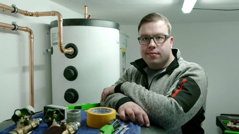 Malte Kanitz will den Betrieb seines Vaters für Sanierung und Haustechnik im sächsischen Mockrehna übernehmen. Der 19-Jährige packt auch jetzt schon mit an, etwa beim Einbau einer 200 Kilogramm schweren Wärmepumpe. Maltes Vater habe seinen Sohn nie gedrängt, in die Firma einzusteigen, um so mehr freue er sich jetzt über dessen Entschluss, erklärte er gegenüber dem MDR-Magazin Umschau. "Er hat seine Lehre super abgeschlossen. Er macht jetzt in Ruhe seinen Meister", so Vater Stefan Kanitz.