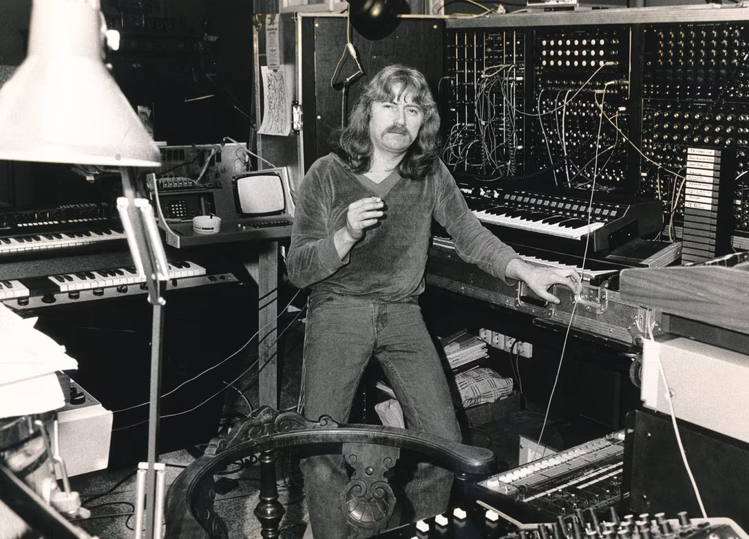 Reinhard Lakomy verfügte über exzellente Technik. Auch ein Moog-Synthesizer, der ursprünglich einmal den Rolling Stones gehörte, fand über Umwege seinen Weg zu ihm.Bildrechte: Monika Ehrhardt-Lakomy DT64-Konzert im Palast der Republik