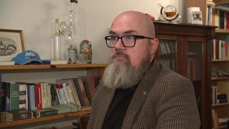 Hans-Thomas Tillschneider, kulturpolitischer Sprecher der AfD in Sachsen-Anhalt, fühlt sich wohl in der Kunstwelt des 19. Jahrhunderts.Bildrechte: MDRIm Entwurf zum Wahlprogramm, das Hans-Thomas Tillschneider maßgeblich mitgeschrieben hat, steht zu lesen: "Die AfD-Sachsen-Anhalt wird diese Identitätsstörung durch eine neue, patriotische Kulturpolitik heilen. Die Kulturpolitik muss den Deutschen ihr Selbstbewusstsein zurückgeben. Dies ist die entscheidende Voraussetzung für eine patriotische Wende auf allen Gebieten."