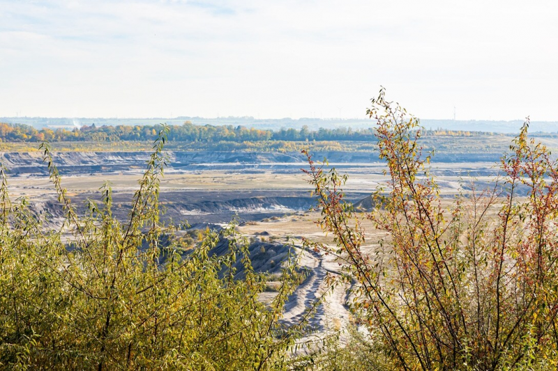 Blick über mehrere Sträucher im Herbst auf den Braunkohle-Tagebau Profen im Burgenlandkreis.Bildrechte: MDR/Michael RosebrockAls ein Beispiel für das neu gedachte Konzept nannte Weisshaar den Revierpark Profen in der mitteldeutschen Bergbauregion. "Der ist eben nicht wieder mit Muttererde zugeschüttet worden, sondern ist so roh geblieben. Und Birkenhaine und Sanddünen bestimmen dort das Bild." Und wenn man nach zwei Stunden an einem See ankomme, seien dort Erosionsrinnen, Täler, Kegel und Labyrinthe. Außerdem gebe es offene Flächen, in denen man sich seinen Weg selber durch die Steppe suchen müsse. Und die Vegetation gestalte ihren Pflanzplan selbst.