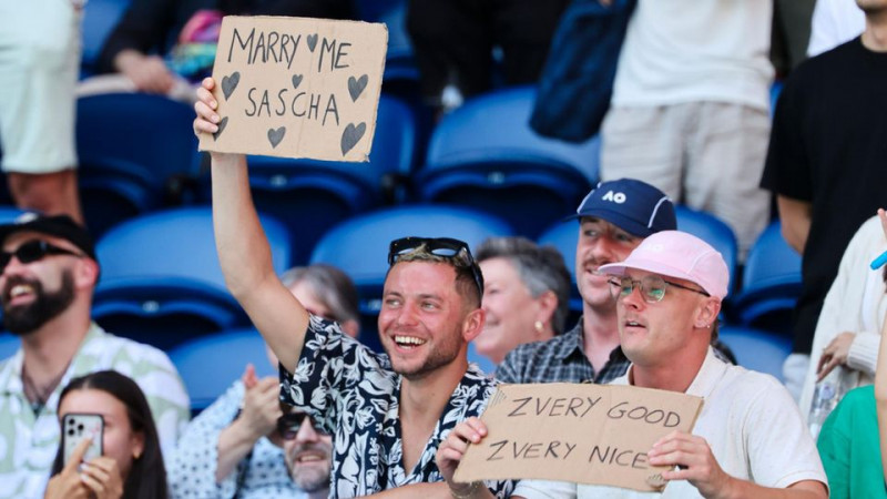 Zverev ließ sich nach der Partie zudem von einem hartnäckigen Fan nicht aus der Ruhe bringen. Beim Interview mit Petkovic rief ein Zuschauer immer wieder von der Tribüne und hielt ein Schild mit der Aufschrift "Sascha marry me" (Sascha heirate mich) hoch.